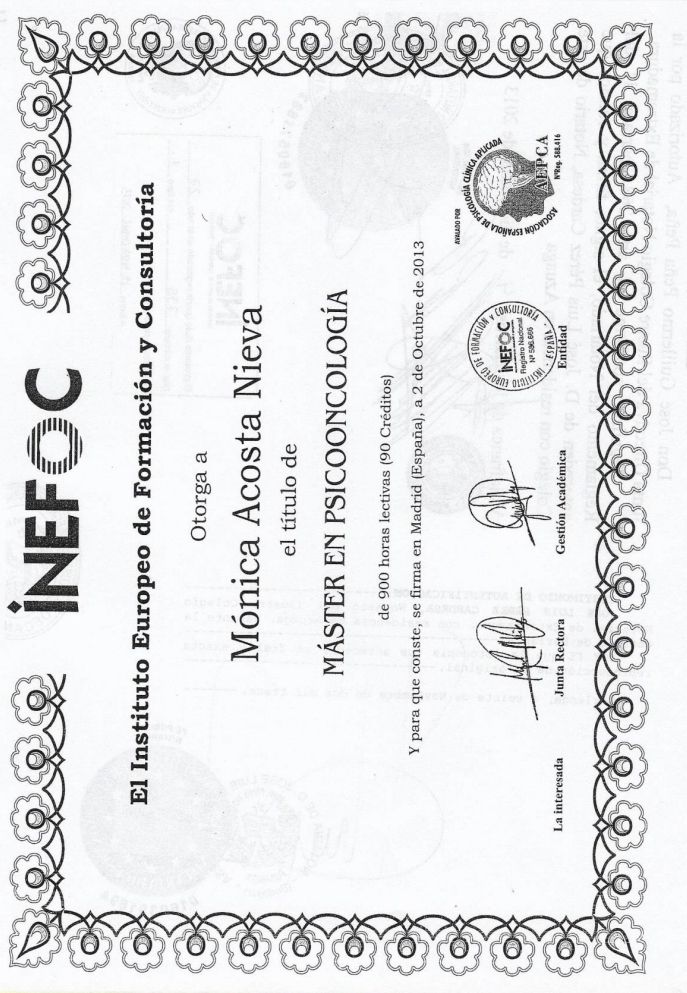 ¿Cuáles son las especialidades principales de Mónica Acosta Nieva?Mónica Acosta Nieva es Psicólogo. Te mostramos algunos de los servicios que ofrece gracias a su trayectoria y su amplia experiencia: Consulta psicológica online, Psicoterapia Individual, Terapia de pareja, Terapia familiar, Consulta psicológica, Acompañamiento psicológico para pacientes crónicos, Acompañamiento psicológico para pacientes oncológicos, Psicooncología, Consulta en línea.