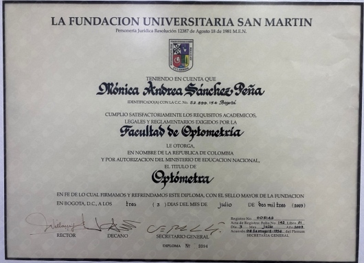 ¿Cuáles son las especialidades principales de Mónica Andrea Sánchez Peña?Mónica Andrea Sánchez Peña es Optómetra. Te mostramos algunos de los servicios que ofrece gracias a su trayectoria y su amplia experiencia: Visita Optometría, Consulta de optometría especializada, Consulta optometría pediátrica, Valoración de ortóptica, Adaptación de lentes de contacto, Servicio de óptica.