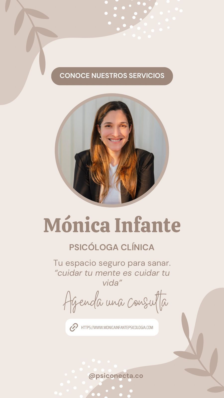 Quiero recomendar de corazón a la Dra. Mónica Infante, quien ha sido una verdadera guía para mí en momentos difíciles de ansiedad y depresión. No solo es una profesional increíblemente capacitada, sino que también tiene una sensibilidad espiritual que hace que su acompañamiento sea único.