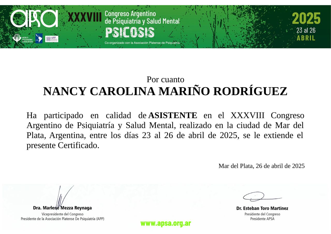 ¿Cuáles son las especialidades principales de Nancy Carolina Mariño Rodríguez?Nancy Carolina Mariño Rodríguez es Psiquiatra. Te mostramos algunos de los servicios que ofrece gracias a su trayectoria y su amplia experiencia: Visita Psiquiatría, Tratamiento del insomnio, Atención integral en adicciones, Consulta en línea, Tratamiento de trastornos de la conducta alimentaria, Tratamiento para la depresión, Consulta Control Psiquiatría, Consulta Psiquiatría primera vez, Trastorno Afectivo Bipolar, Trastornos de Ansiedad.