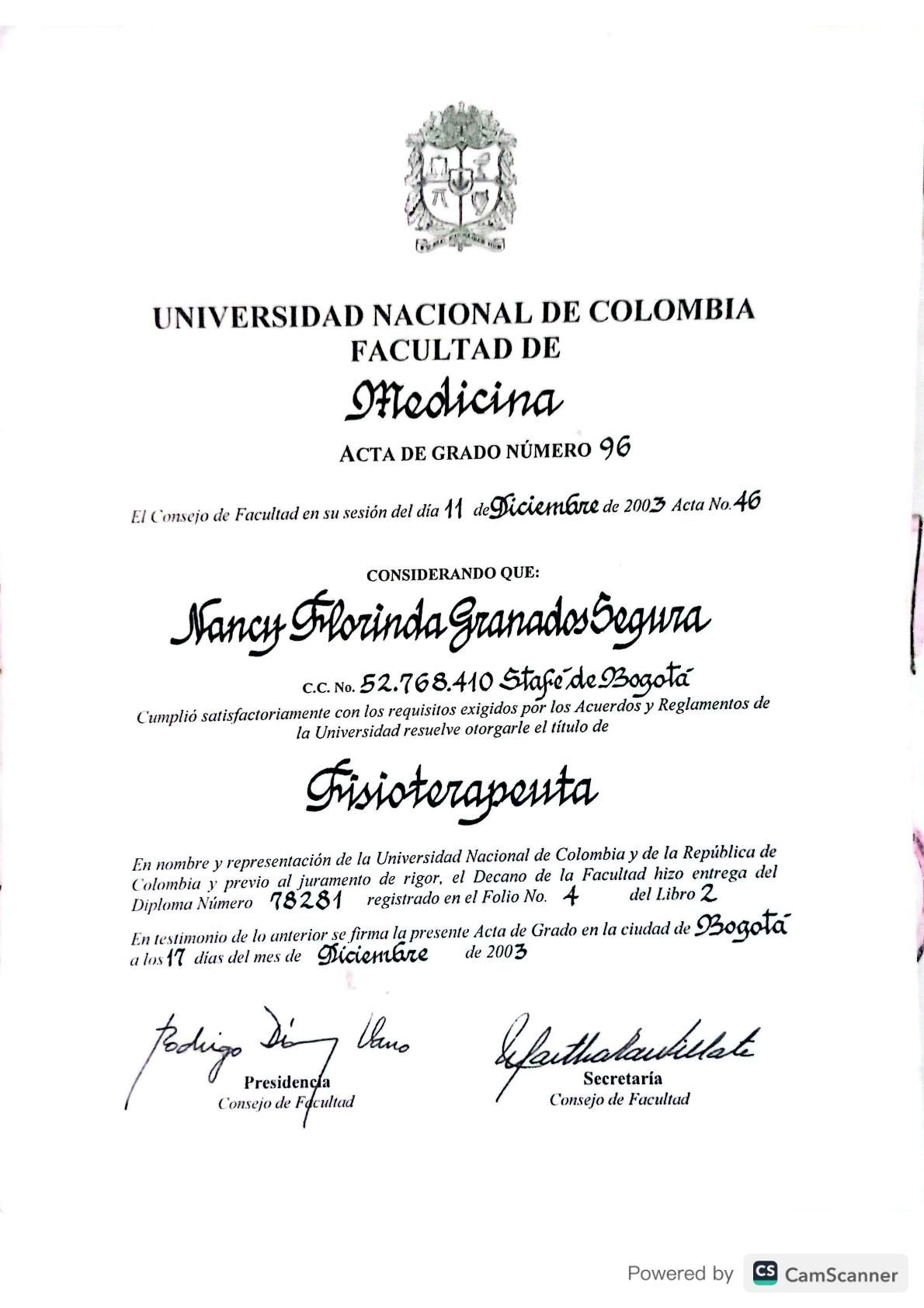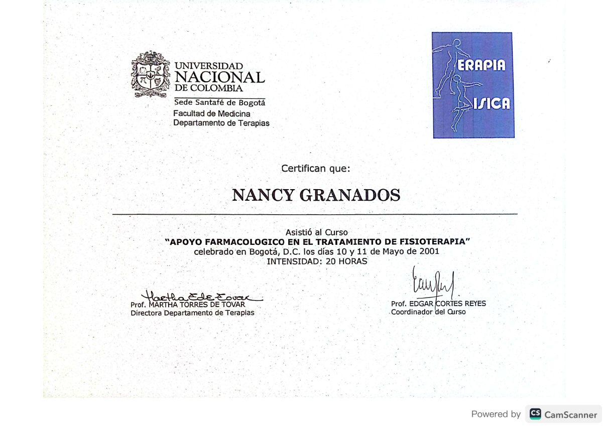 Me gradué como Fisioterapeuta con especialización en salud ocupacional de la Universidad Nacional de Colombia, con experiencia en UCI, ortopedia, neurología, terapia respiratoria en consulta externa.
