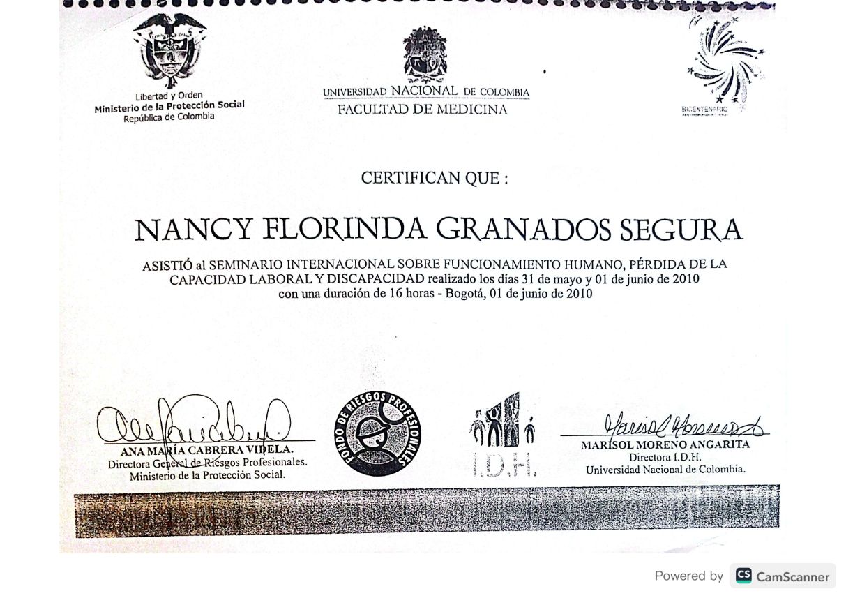 He tenido experiencia en el Campo de Medicina Laboral en la Universidad Nacional de Colombia.