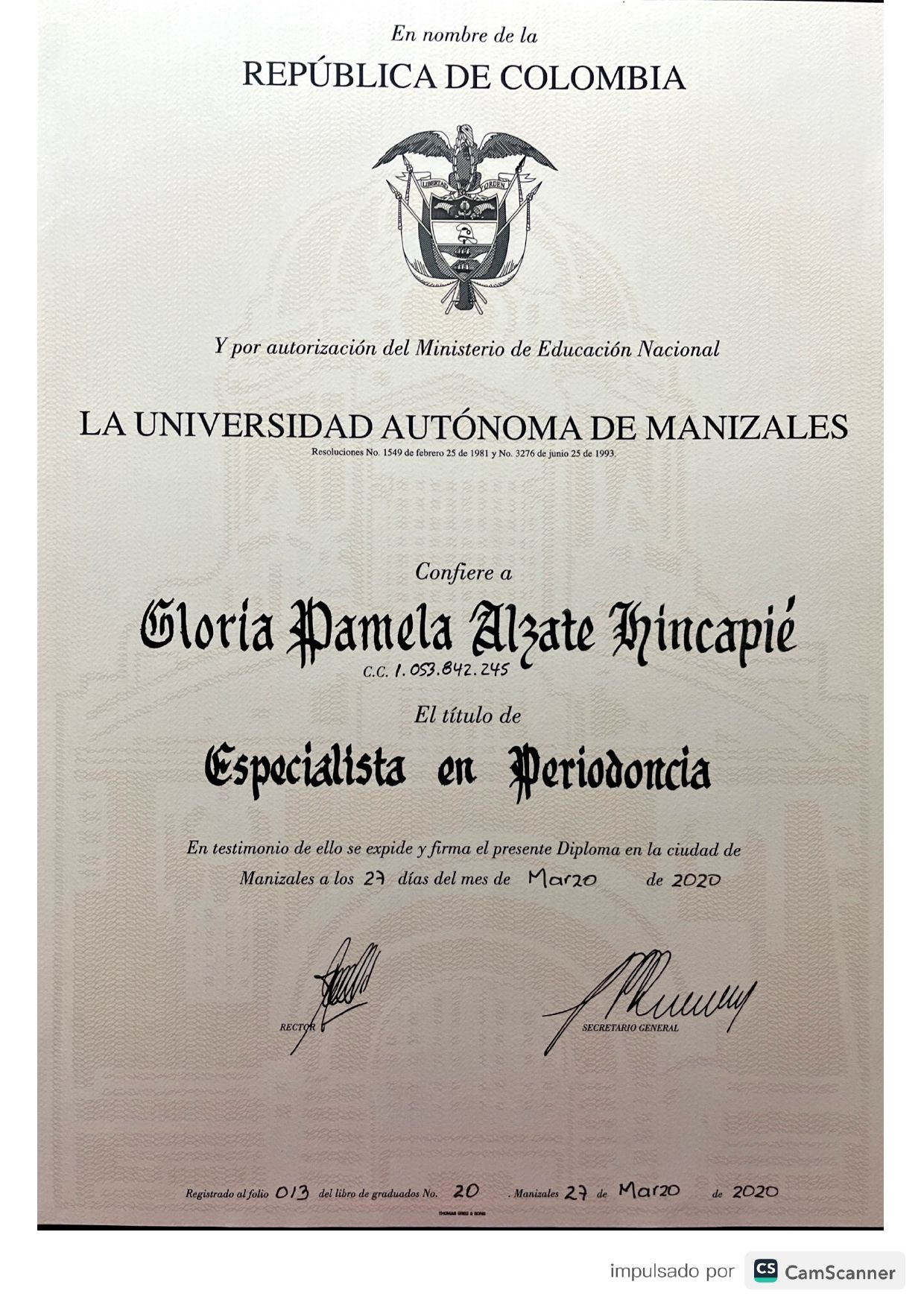 ¿Cuáles son las especialidades principales de Pamela Alzate Hincapie?Pamela Alzate Hincapie es Odontólogo. Te mostramos algunos de los servicios que ofrece gracias a su trayectoria y su amplia experiencia: Visita Odontología, Periodoncia.