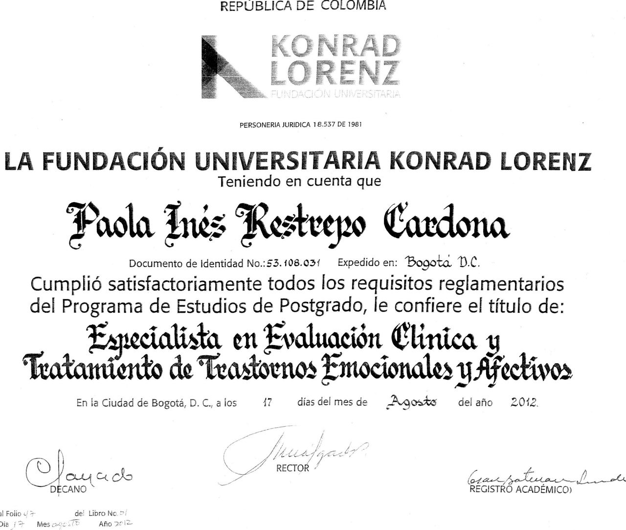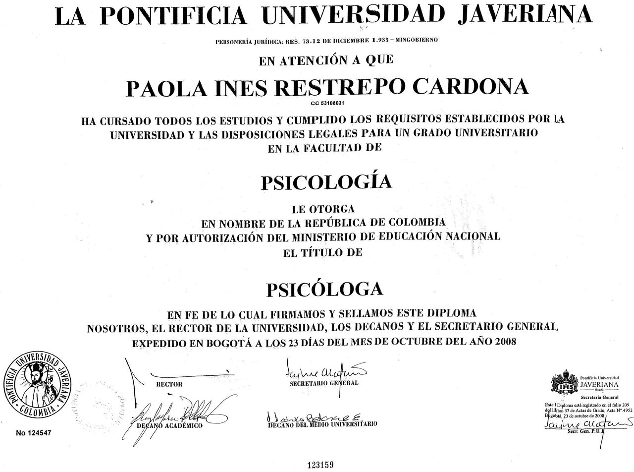 ¿Cuáles son las especialidades principales de Paola Inés Restrepo Cardona?Paola Inés Restrepo Cardona es Psicólogo. Te mostramos algunos de los servicios que ofrece gracias a su trayectoria y su amplia experiencia: Consulta psicológica por adicciones, Consulta psicológica online, Evaluación psicológica, Valoración psicológica clínica, Psicoterapia de duelo, Tratamiento para la depresión, Consulta psicológica, Duelo por ruptura de pareja, Duelo por pérdida de ser querido, Dificultades del estado de ánimo.