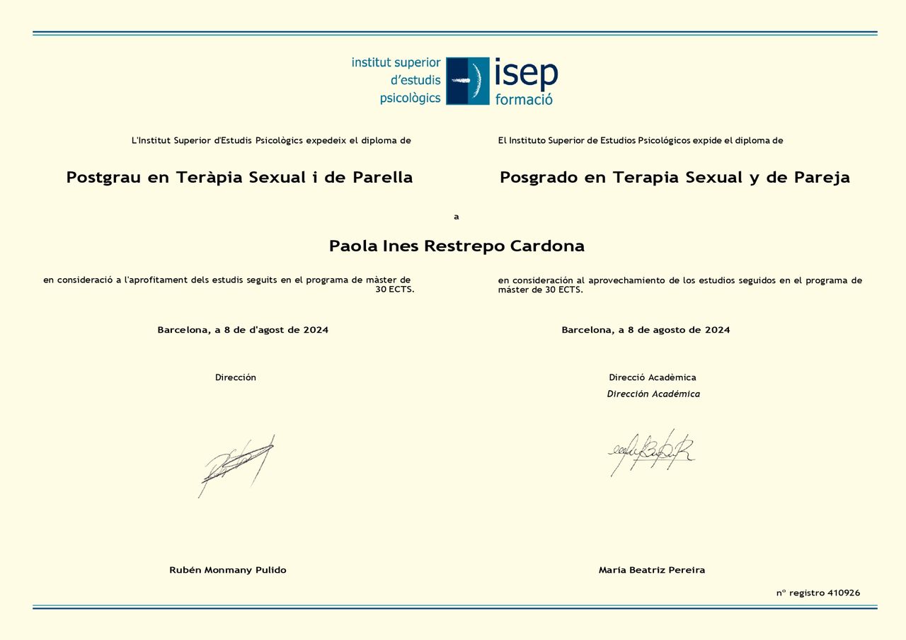 Agradezco a Dios y a la vida por haber puesto en mi camino a una profesional tan íntegra y excepcional en un momento difícil para mi mente. La doctora Paola es un ser de luz que escucha con atención, acompaña con empatía y guía al paciente mediante recursos y herramientas aplicables a la vida diaria. Su enfoque va más allá del motivo inicial de consulta, ayudándome a identificar y mejorar otros aspectos importantes de mi vida. Desde mi primera sesión con ella he notado cambios positivos, reales y profundos, que han impactado todas las dimensiones de mi ser.