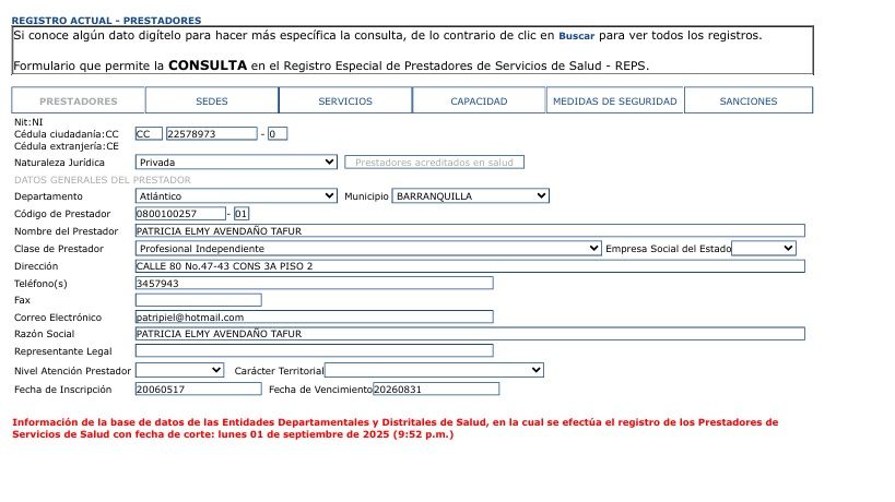¿Cuándo podría tener una cita con Patricia Avendaño Tafur?Ahora mismo Patricia Avendaño Tafur no tiene horas disponibles, ya que su agenda está llena para las próximas semanas. Te recomendamos contactar a Patricia Avendaño Tafur por si se libera algún espacio o si deseas pedir una cita para más adelante.