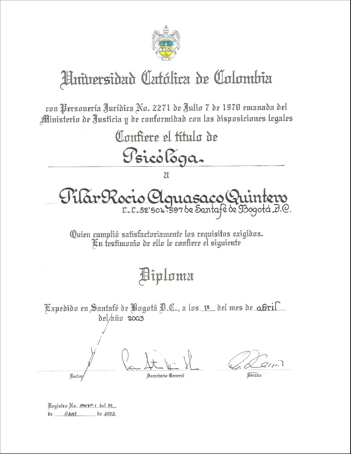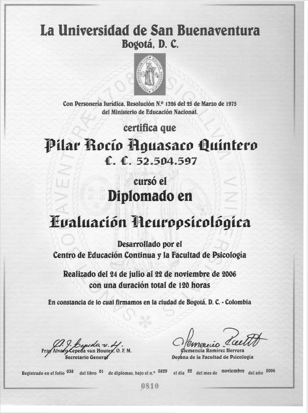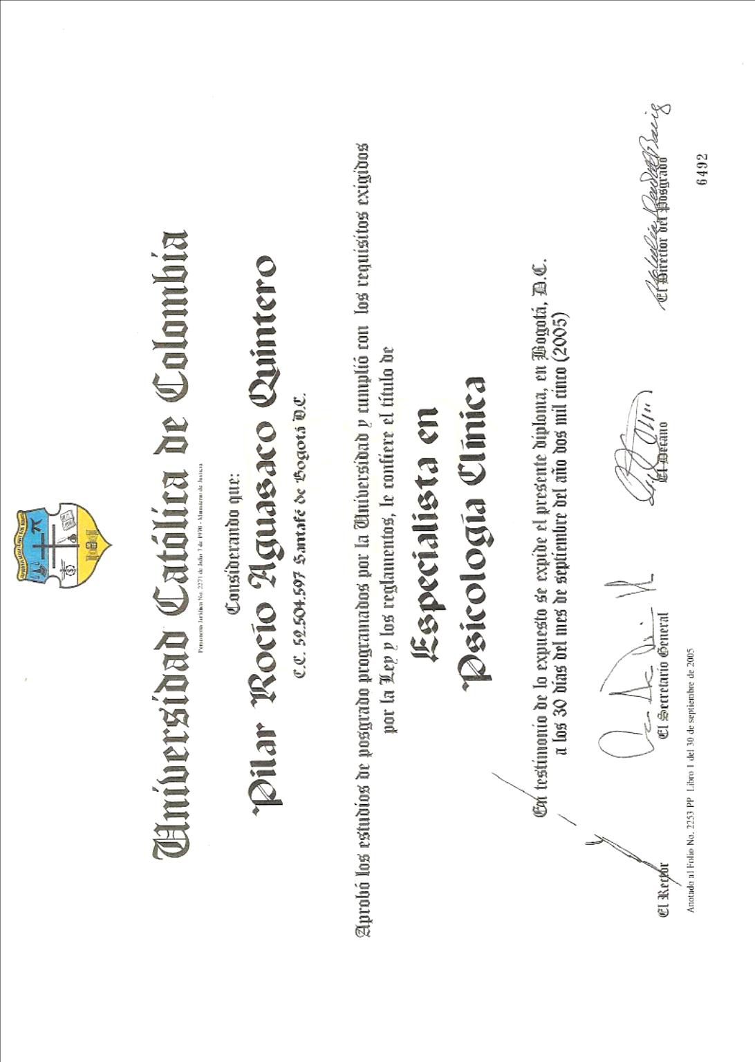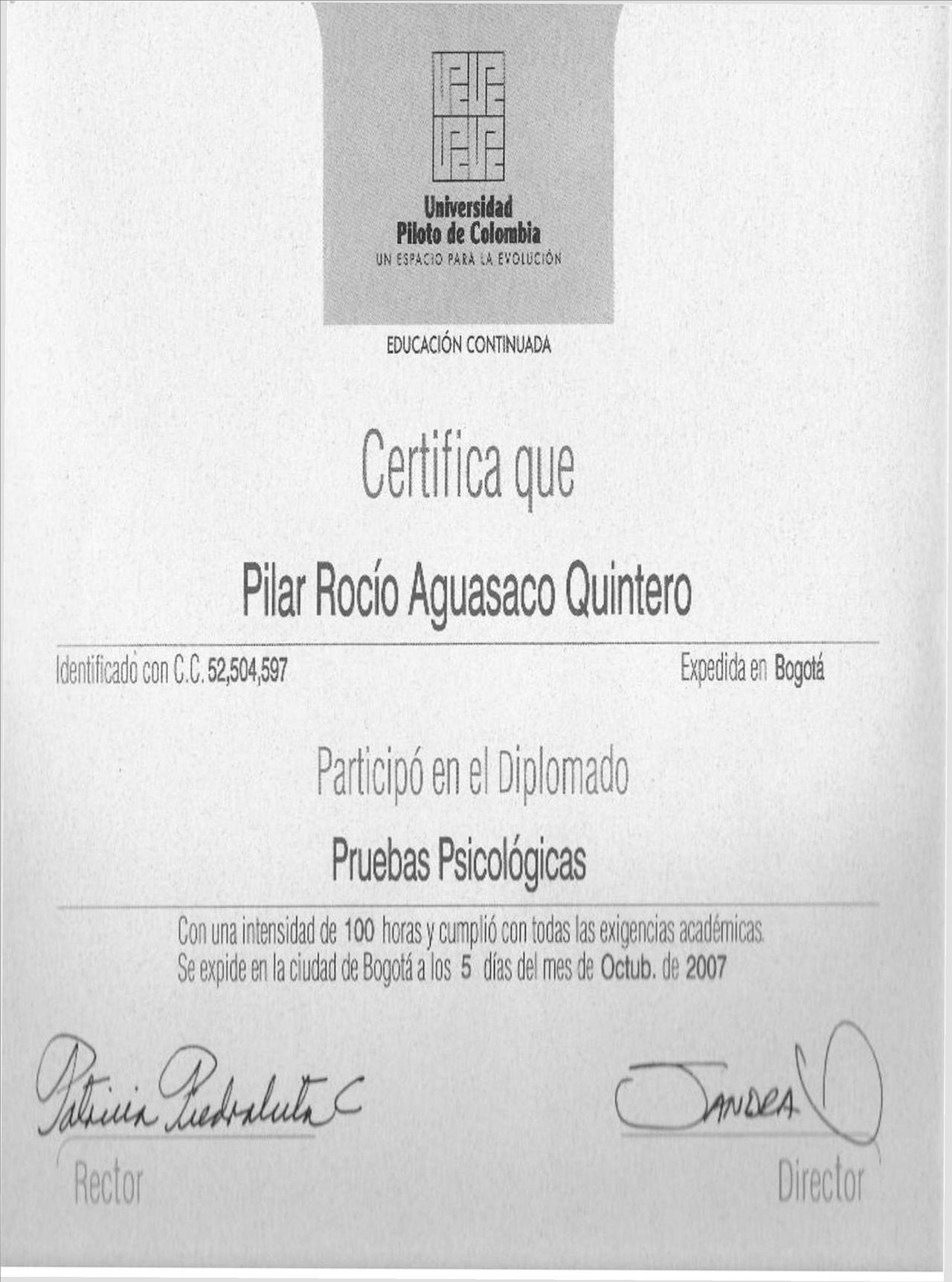 ¿Cuáles son las especialidades principales de Pilar Aguasaco?Pilar Aguasaco es Psicólogo. Te mostramos algunos de los servicios que ofrece gracias a su trayectoria y su amplia experiencia: Asesoría psicológica y psicoeducación, Coaching Familiar, Consulta psicológica infantil, Grupos de apoyo para pacientes con ansiedad, Pautas de crianza, Visita Psicología, Pruebas psicotécnicas, Rendimiento académico, Selección de personal, Visita domiciliaria Psicología.
