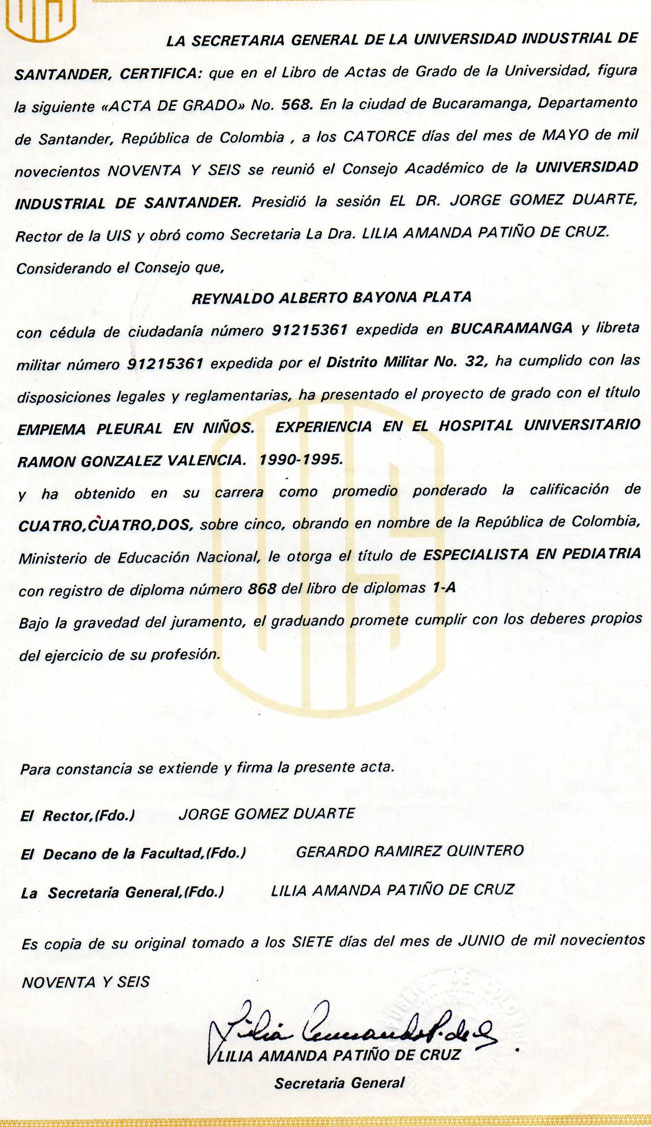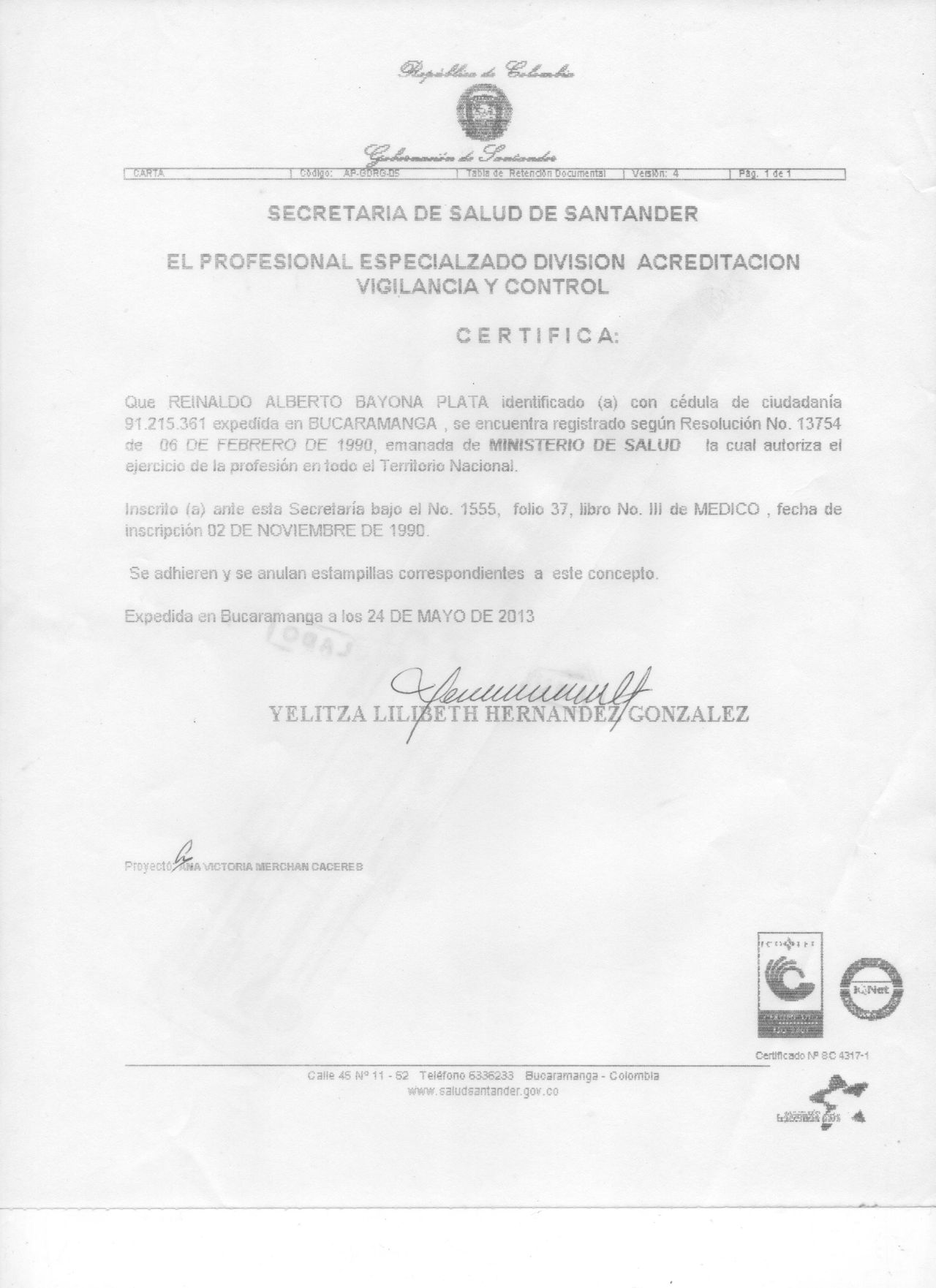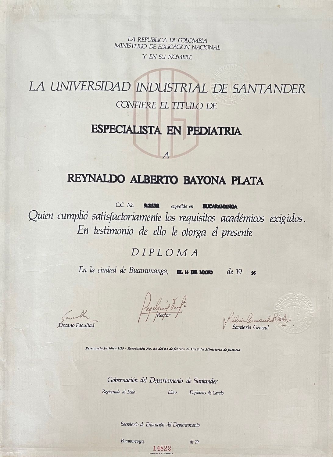 Soy medico pediatra con mas de 25 años de experiencias miembros activo y vicepresidente de la Sociedad Colombiana de pediatría. profesor de medicina UDES y UIS. Mi calidad de profesor me obliga a estar actualizado en pediatría. Tengo disponibilidad permanente para mis pacientes y sus padres.