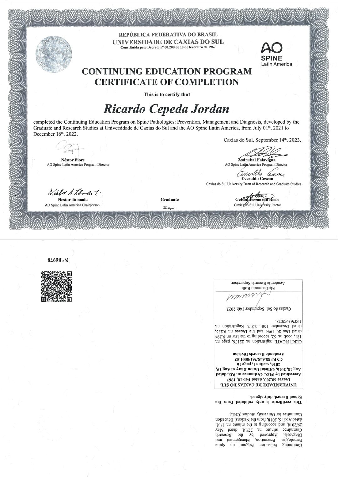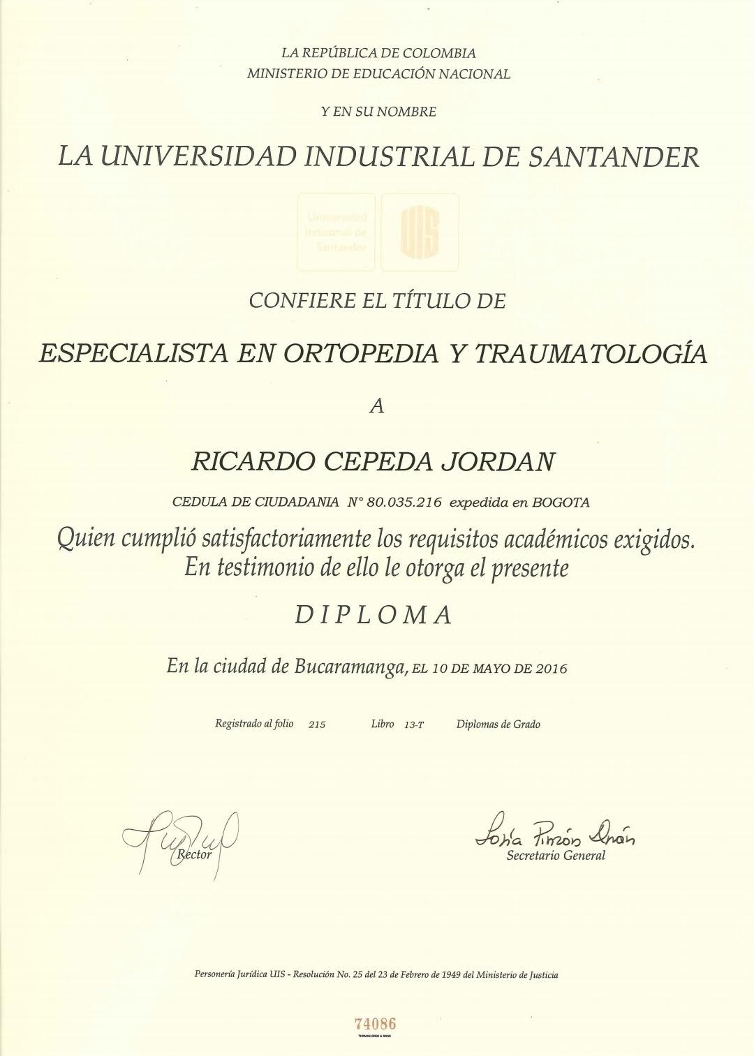 Cirujano ortopedista de la universidad industrial de Santander subespecialista en cirugía de la columna y enfermedades relacionadas a la columna AOSPINE - Universidad de La plata. Argentina. Cirugía mínimamente invasiva. Miembro SCCOT. Miembro de la Sociedad Colombiana de Columna.