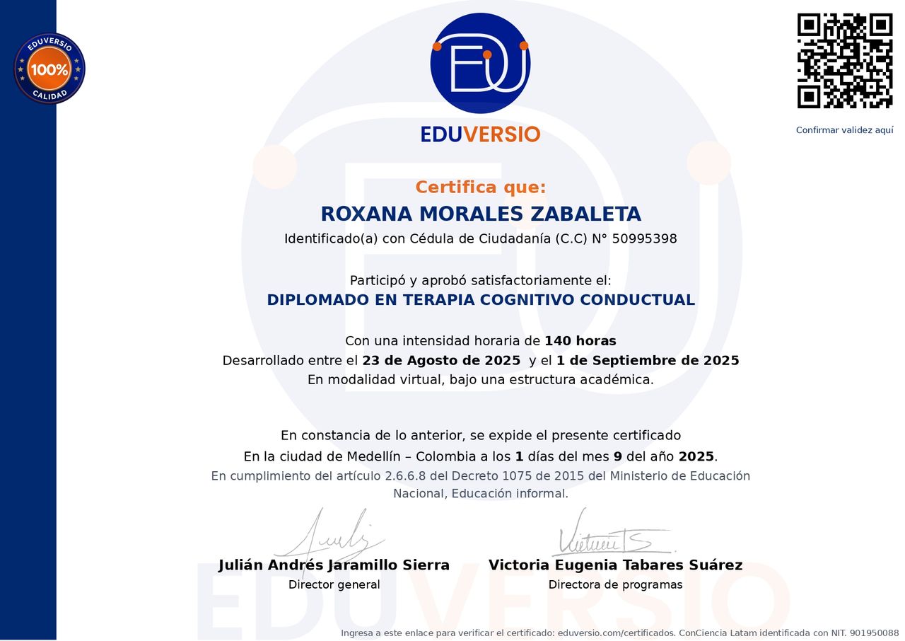 ¿Cuáles son las especialidades principales de Roxana Morales Zabaleta?Roxana Morales Zabaleta es Psicólogo. Te mostramos algunos de los servicios que ofrece gracias a su trayectoria y su amplia experiencia: Asesoría psicológica y psicoeducación, Consulta psicológica infantil, Visita Psicología, Psicoterapia de pareja, Terapia familiar, Consulta psicológica online, Consulta virtual de pareja, Psicoterapia virtual, Consulta en línea.