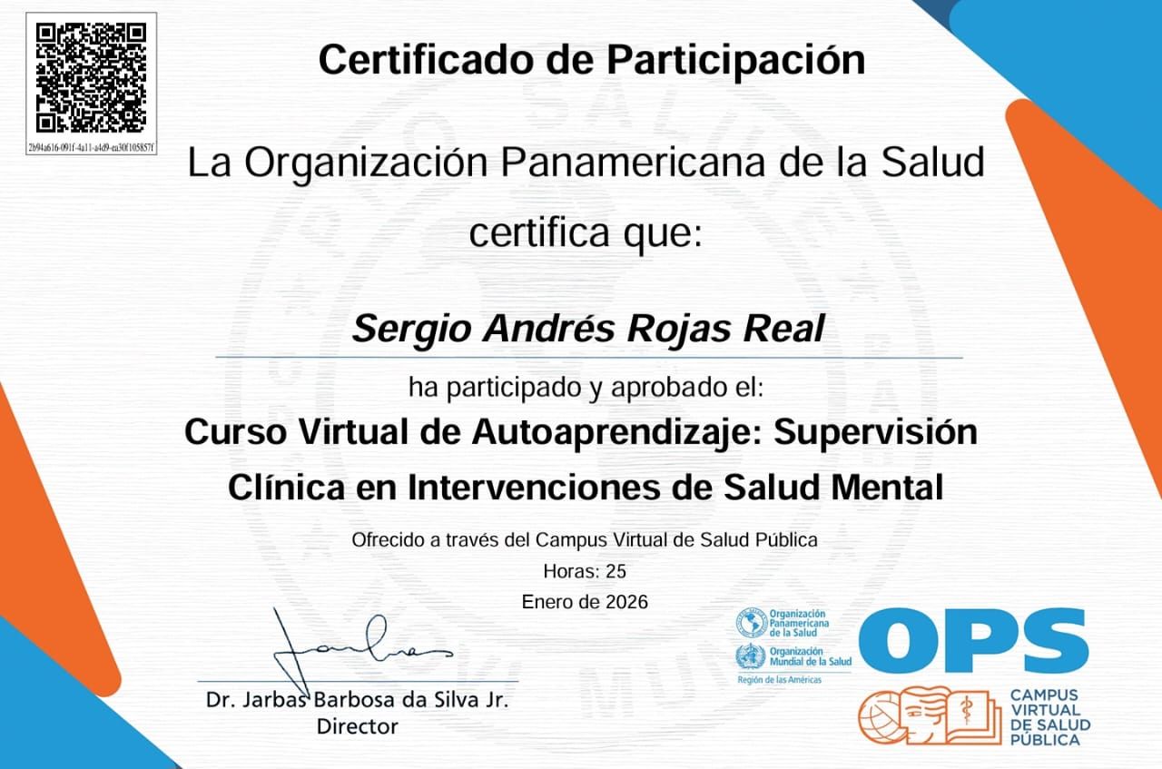 ¿Cuáles son las especialidades principales de Sergio Andrés Rojas?Sergio Andrés Rojas es Psicólogo. Te mostramos algunos de los servicios que ofrece gracias a su trayectoria y su amplia experiencia: Asesoría psicológica y psicoeducación, Consulta psicológica por adicciones, Pautas de crianza, Visita Psicología, Psicoterapia Individual, Terapia de pareja, Terapia familiar, Orientación profesional, Consulta en línea, Manejo en procesos de duelo.