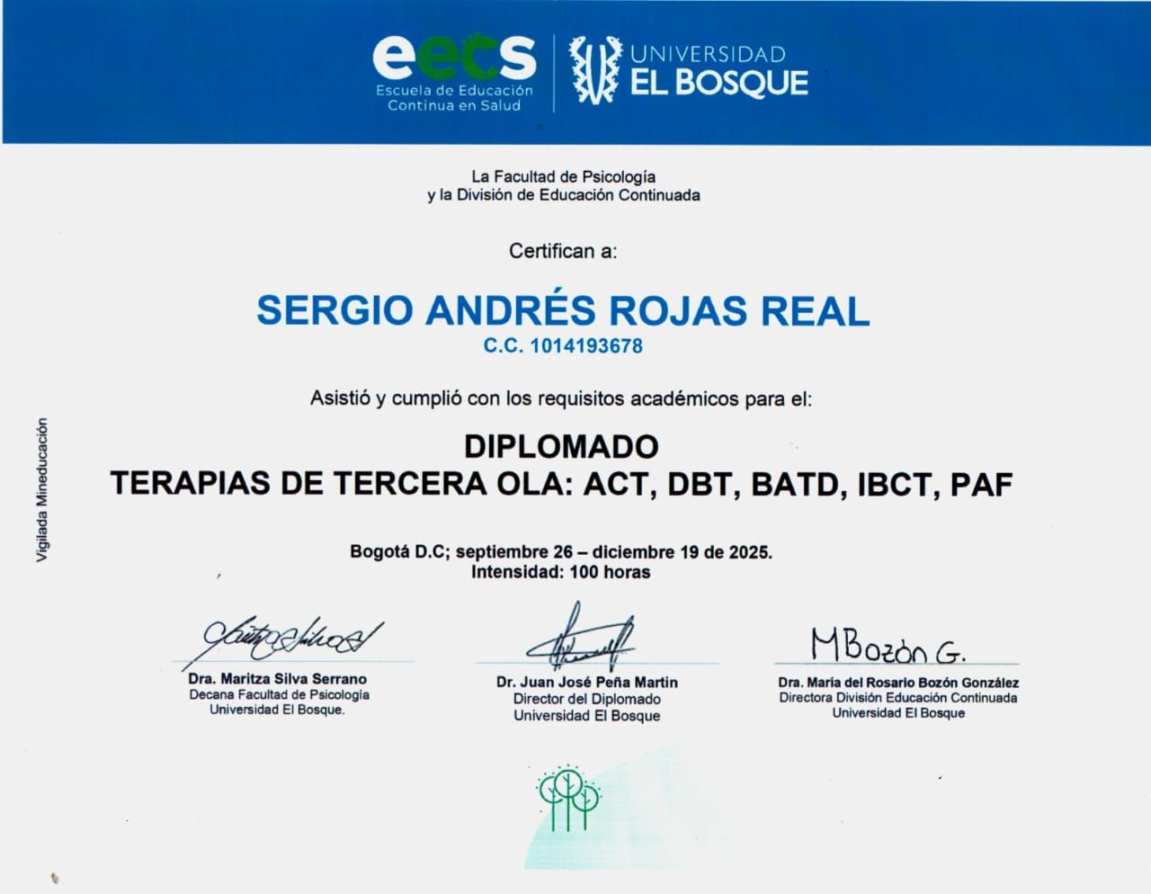 Carlos, tomo con aprecio tu comentario. Saber que contaste con un espacio sereno para expresar lo que sentías y que te sentiste atendido marca una base muy importante para el trabajo terapéutico que se va construyendo paso a paso.
