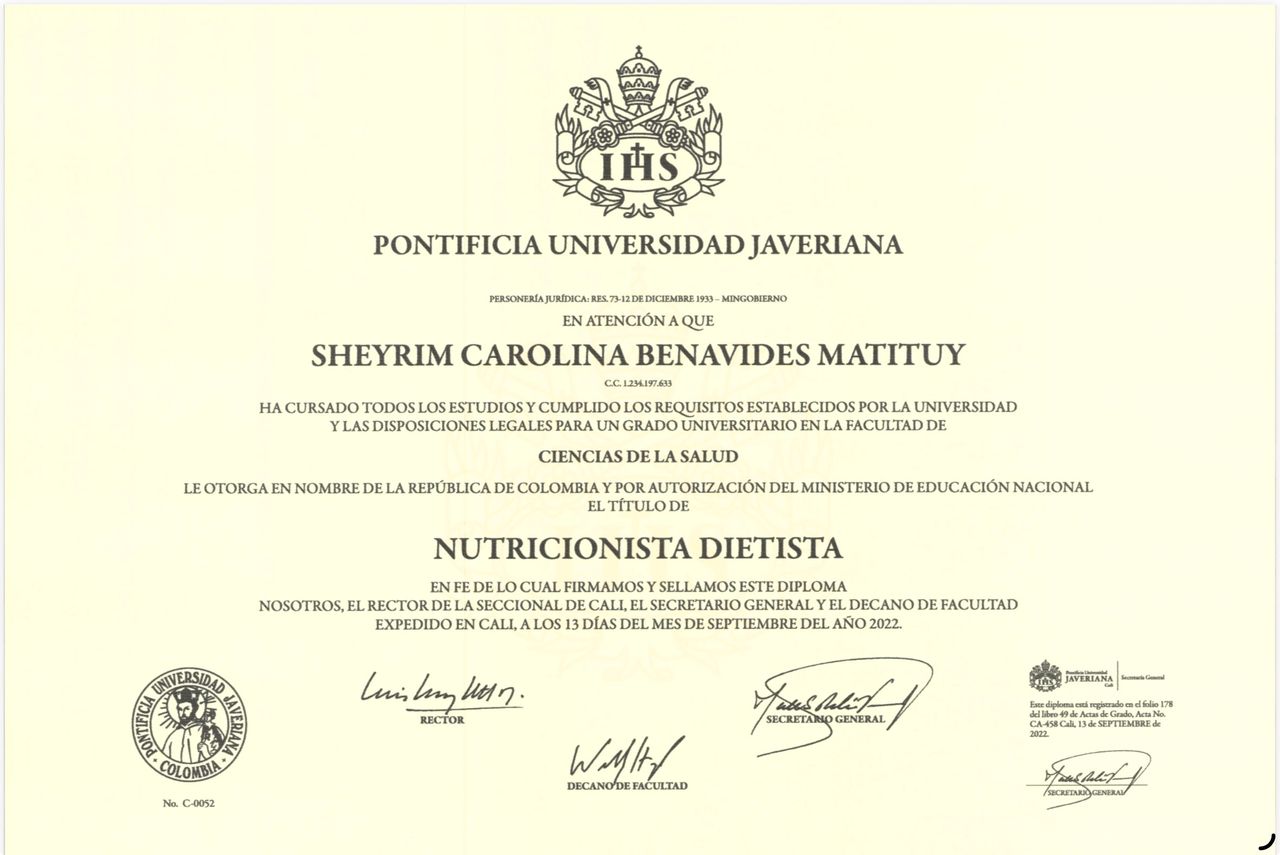¿Cuáles son las especialidades principales de Sheyrim Carolina Benavides Matituy?Sheyrim Carolina Benavides Matituy es Nutricionista. Te mostramos algunos de los servicios que ofrece gracias a su trayectoria y su amplia experiencia: Toma de medidas corporales, Atención nutricional especializada presencial, Control nutrición (6 meses a partir de la ultima cita), Consulta en línea, Asesoría nutricional online, Nutrición oncológica en línea.