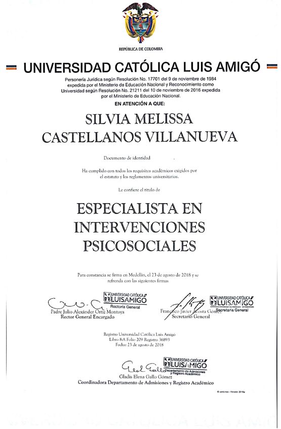 • PSICOLOGA SILVIA MELISSA CASTELLANOS VILLANUEVA • Consulta en línea •