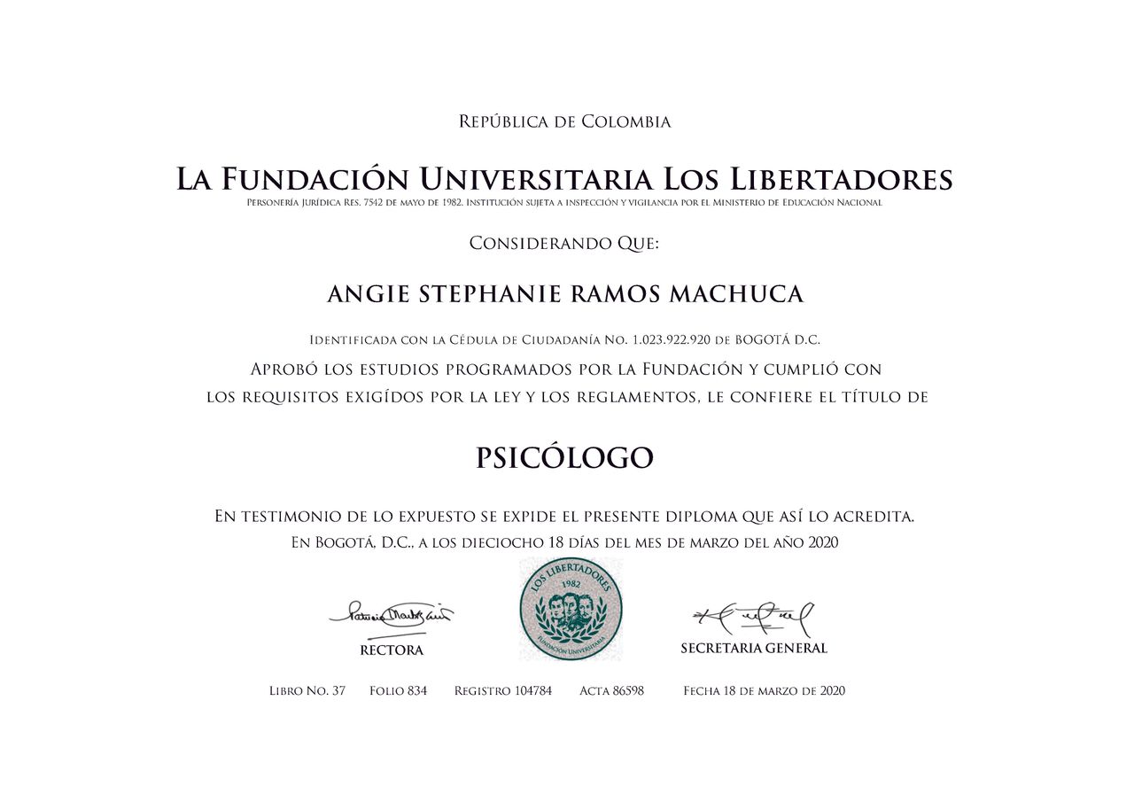 Agradezco por su profesionalismo y dedicación durante mi proceso. Adicionalmente, el ambiente que crea es de seguridad y confianza,lo cual facilita el desarrollo de las sesiones, tanto psicológicas como políticas.