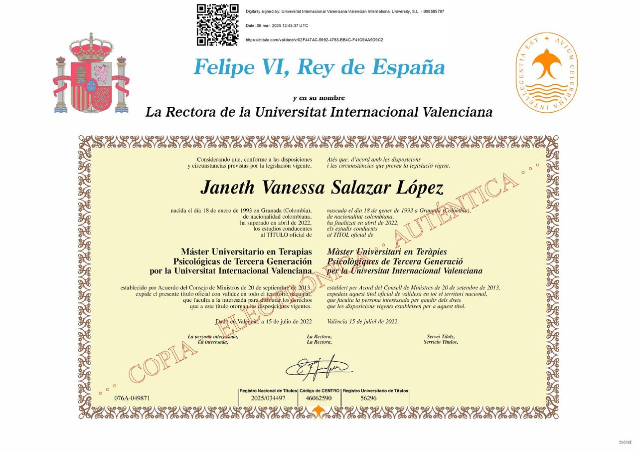 Mi experiencia con la doctora Vanessa Salazar ha sido excelente. En la primera consulta pude percibir profesionalismo y empatía de su parte. Me siento en un lugar seguro en el que puedo crecer psicológica y emocionalmente.
