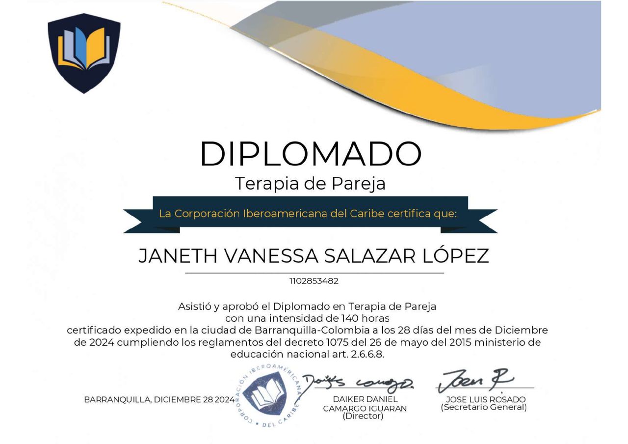 ¿Cuáles son las especialidades principales de Vanessa Salazar?Vanessa Salazar es Psicólogo. Te mostramos algunos de los servicios que ofrece gracias a su trayectoria y su amplia experiencia: Visita Psicología, Arte terapia Individual, Asesoría psicológica, Capacitaciones empresariales, Psicología Transpersonal, Consulta virtual de pareja, Consulta en línea, Tratamiento para enfermedades psicosomáticas, Orientación, asesoría e intervención psicológica, Urgencias psicologicas a domicilio.