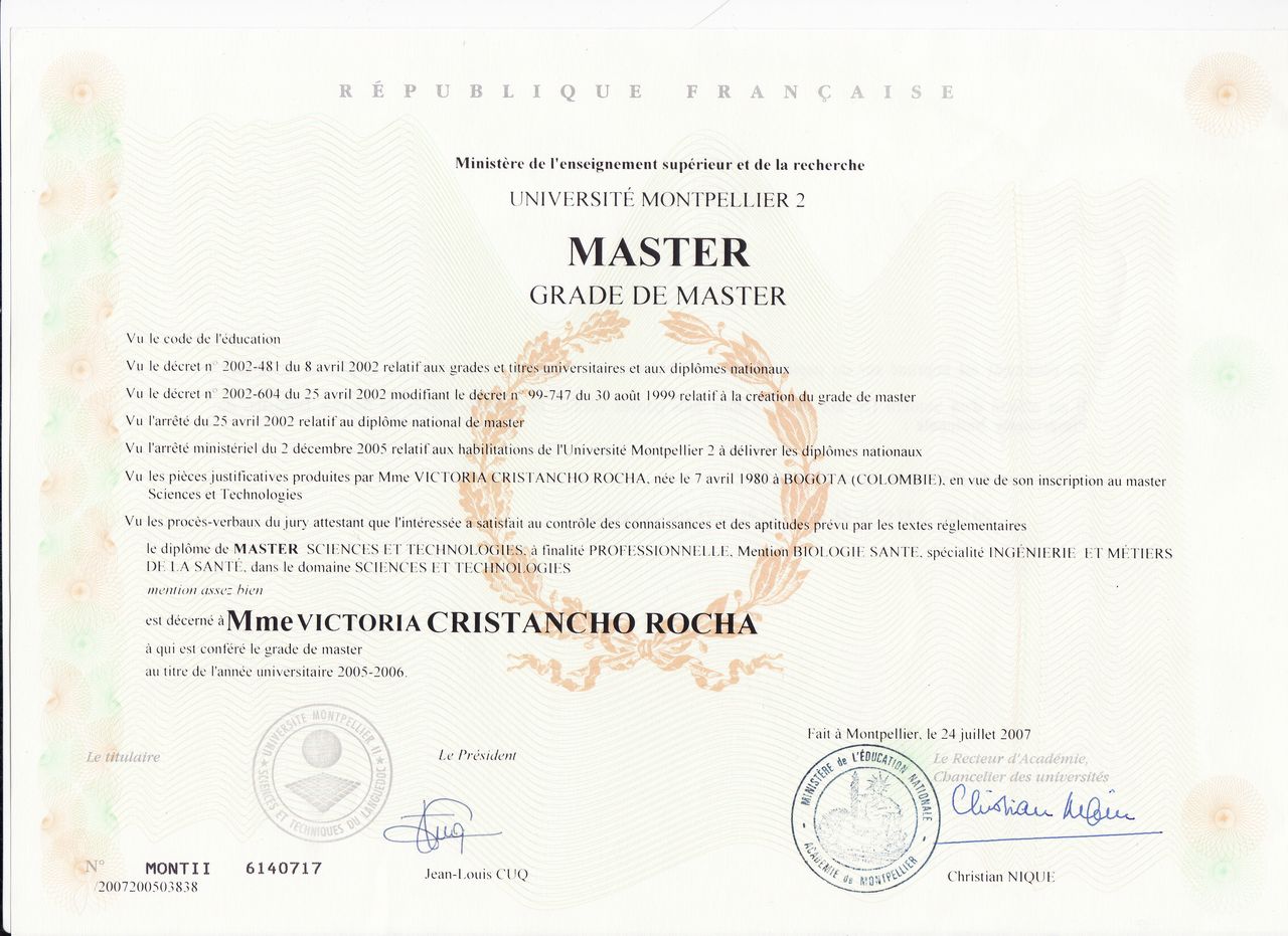 Soy doctora en psicología (PhD) Master en neurociencias y en neuropsicología de las universidades Paris Descartes y Pierre Marie Curie. Obtuve mi pre grado como psicóloga en la universidad El Bosque.