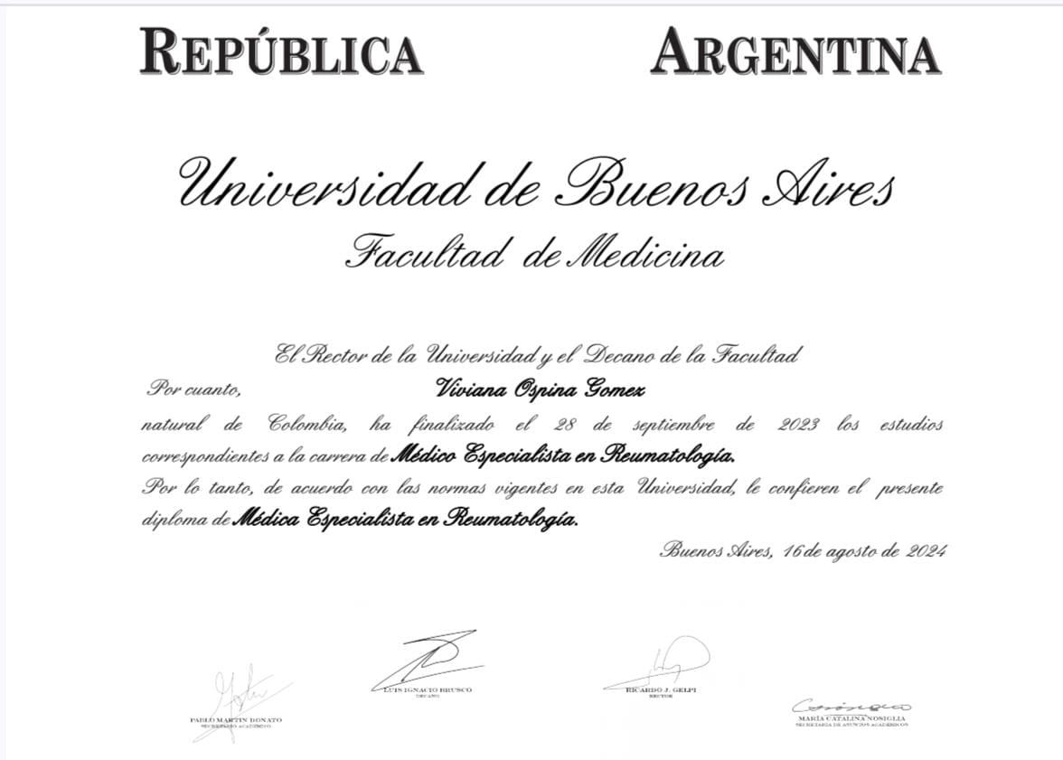 Artritis, lupus y espondiloartritisEspecialista en Reumatología- UBAEmpatía, claridad y trato humano