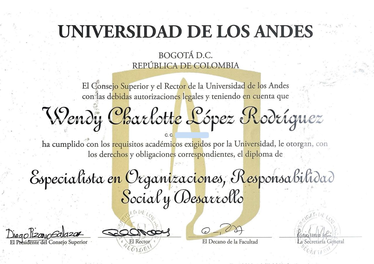 Especialista en desarrollo humano de la Universidad de los Andes (Bogotá, Colombia).