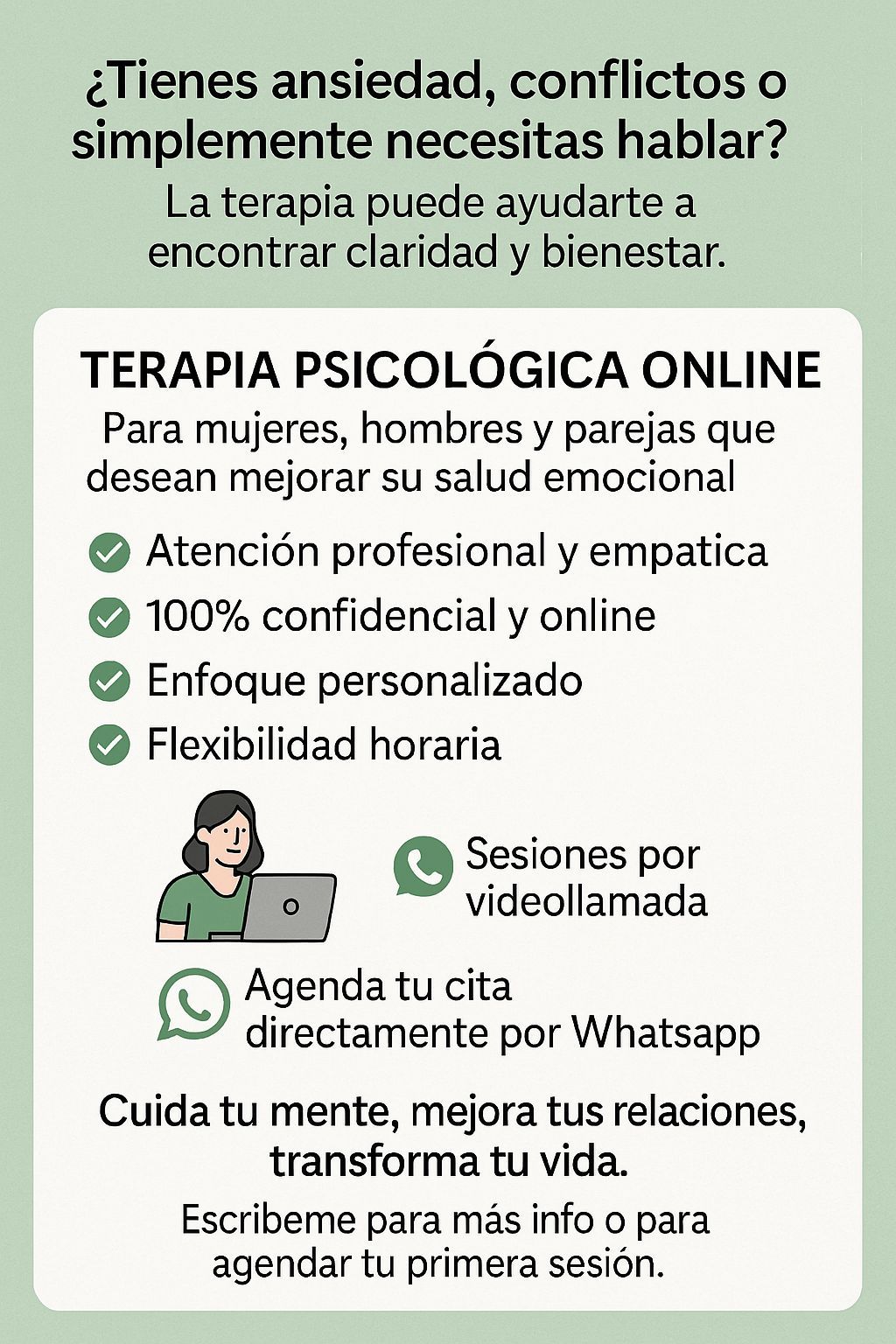 Soy psicóloga con vocación de servicio y una trayectoria profesional desde 1997. Como mujer, hija, hermana, esposa y madre, comprendo la experiencia humana desde una mirada integral, lo que me permite acompañar a mis pacientes con empatía, respeto y compromiso.