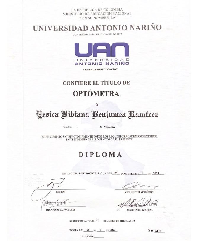 Optómetra con experiencia en la atención integral de la salud visual y ocular.