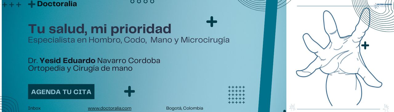 ¿Cuáles son las especialidades principales de Yesid Eduardo Navarro Cordoba?Yesid Eduardo Navarro Cordoba es Cirujano De Mano. Te mostramos algunos de los servicios que ofrece gracias a su trayectoria y su amplia experiencia: Visita Ortopedia y Traumatología, Artroplastia de Hombro, Cirugía y microcirugía del nervio periférico, Cirugía de Mano, Artroscopia de hombro, Artroscopia de codo, Consulta de codo, Cirugía ambulatoria tejidos blandos de mano y muñeca, Cirugía ambulatorio osteosintesis de pequeño y mediano porte mano y muñeca, Cirugía mayor de mano y muñeca ambulatoria o con hospitalización.