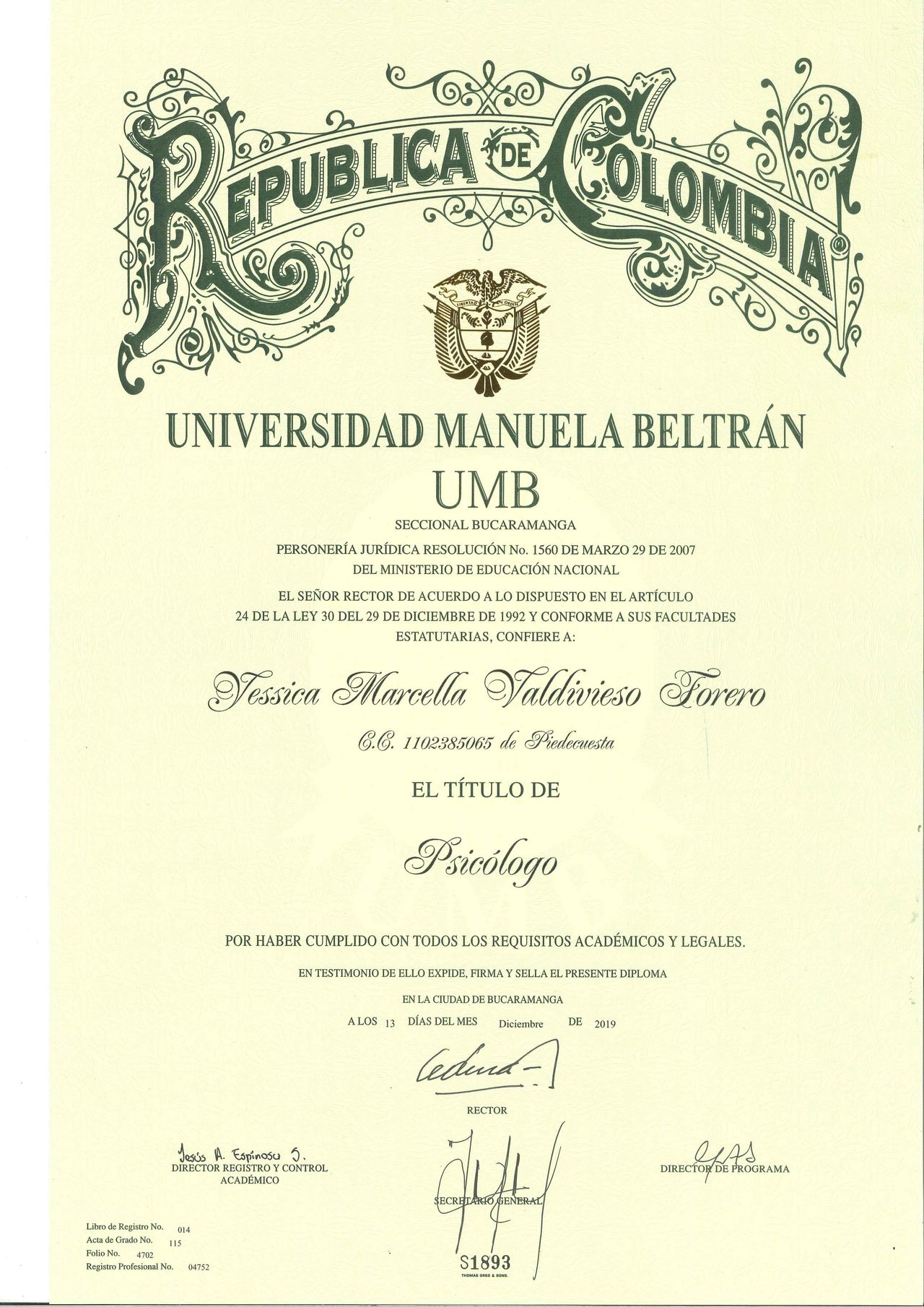 ¿Cuáles son las especialidades principales de Yessica Marcella Valdivieso Forero?Yessica Marcella Valdivieso Forero es Psicólogo. Te mostramos algunos de los servicios que ofrece gracias a su trayectoria y su amplia experiencia: Consulta psicológica online, Consulta virtual de pareja, Psicoterapia virtual, Psicoterapia de pareja y de familia.