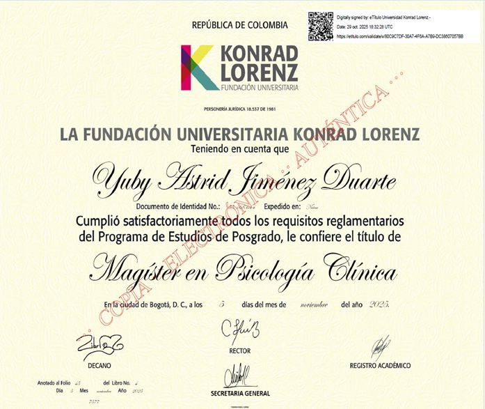 Soy una apasionada de la psicología clínica; amo y respeto profundamente mi profesión, motivo por el cual me he formado de manera continua para ofrecer siempre lo mejor a mis consultantes. Mi práctica se fundamenta en la psicología basada en la evidencia.